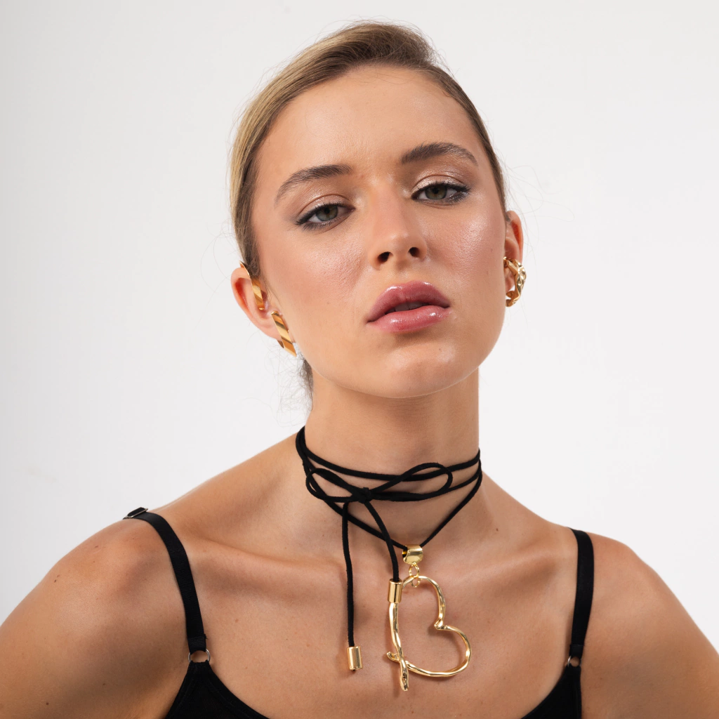 O Colar Mooring é confeccionado em fita de corino com acabamento soft, e possui um maxi pingente em formato de coração com acabameto metálico. A fita de corino acrescenta versatilidade ao acessório, que pode ser amarrado de diversas formas. (130 cm de comprimento da fita / 7,5 cm de altura do pingente)