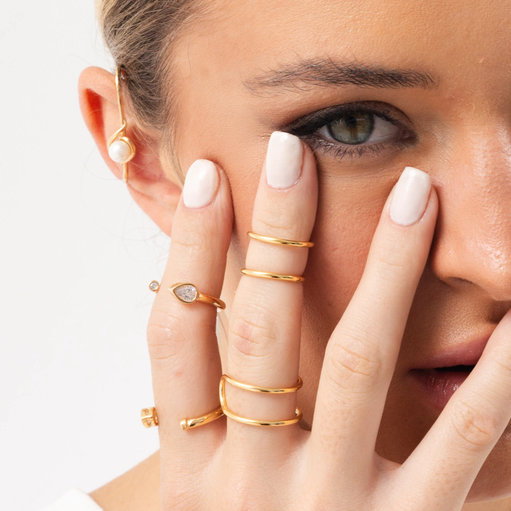 O Anel Hiko possui uma zircônia em formato de gota e outra redonda. Possui três tamanhos, atente-se: P - 14 / M - 17 / G - 20. (Zircônia Gota: 8 cm / 0,2 cm de largura).