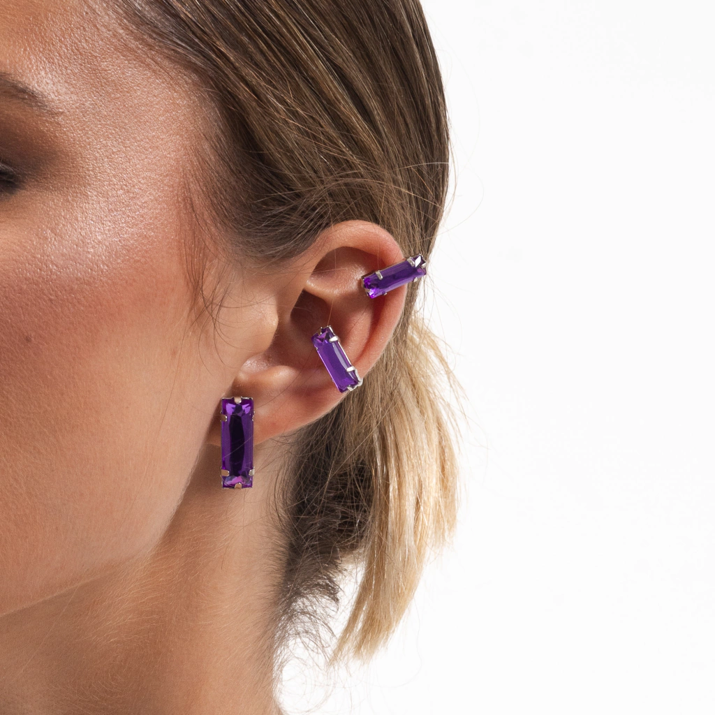 O Brinco Violet possui cravação com pedra lapidada em resina na cor roxa. (2,2 cm de altura / 0,9 cm de largura)