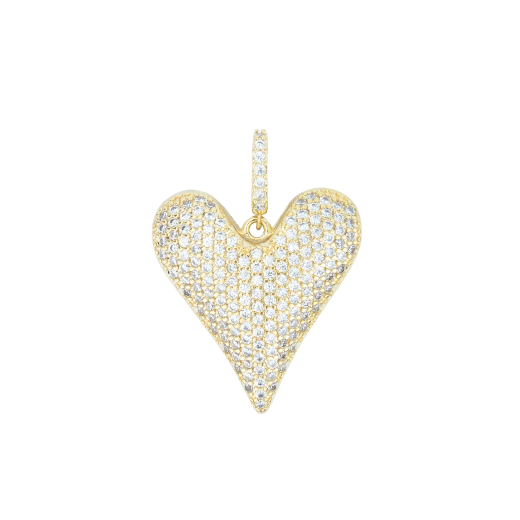 O Pingente Coração Cravejado une sofisticação e modernidade com seu formato de coração e zircônias aplicadas. (2,9cm de largura e 3,8cm de altura)