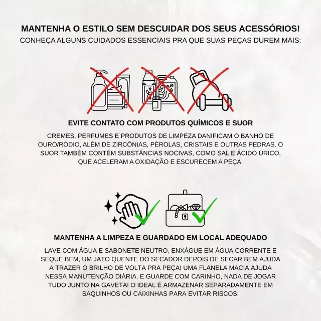 Todas nossas peças são folheadas a Ouro e Ródio Branco e passam por um processo antialérgico.