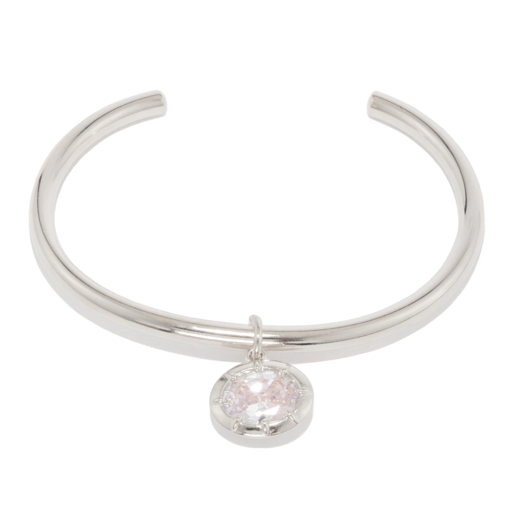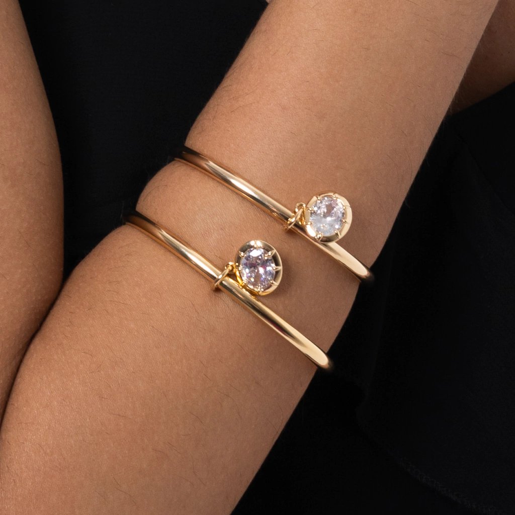 The Glam Bracelet features a tube design with a central pendant set with zirconia stones (non-removable). It is slightly adjustable to fit comfortably around the wrist. (0.4 cm tube thickness / 1.5 cm pendant width)