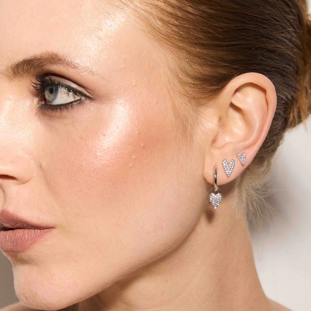 O Brinco L’Amour 2 Tamanhos é delicado e possui formato de coração cravejado. (P= 0,7 cm de altura x 0,5 cm de largura / M= 0,9 cm de altura x 0,6 cm de largura)