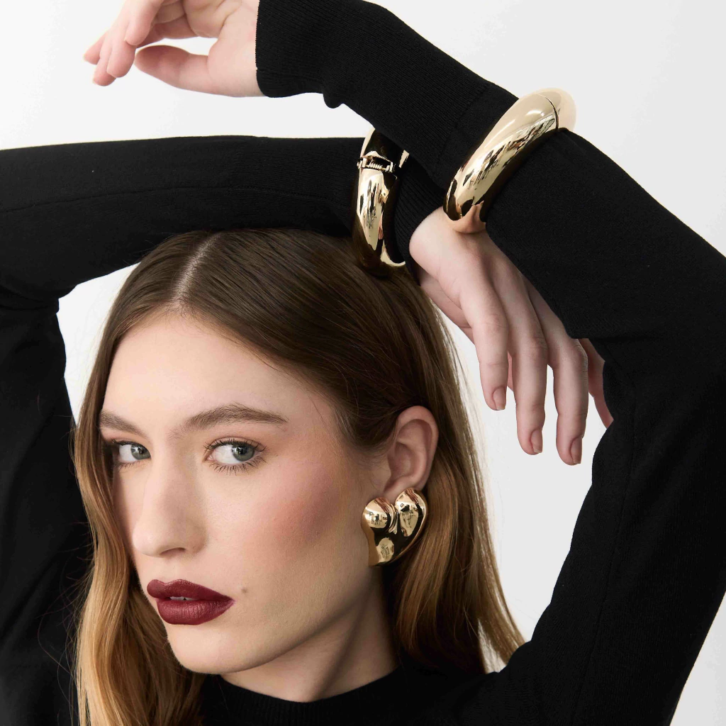 O Brinco Obsidian é um modelo em formato de coração, levemente assimétrico. Seu acabamento não uniforme e maximalista, traz personalidade e estilo a peça. (4,1 cm de altura / 3,9 cm de largura)