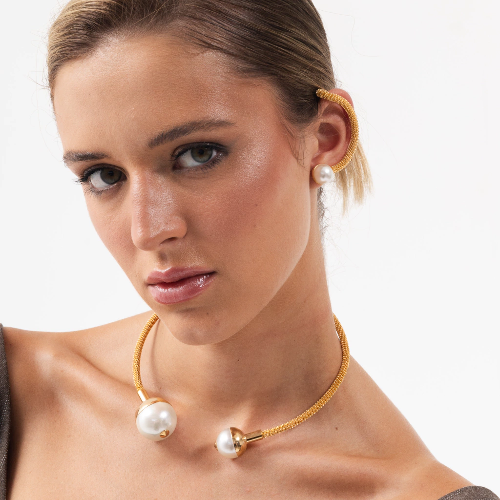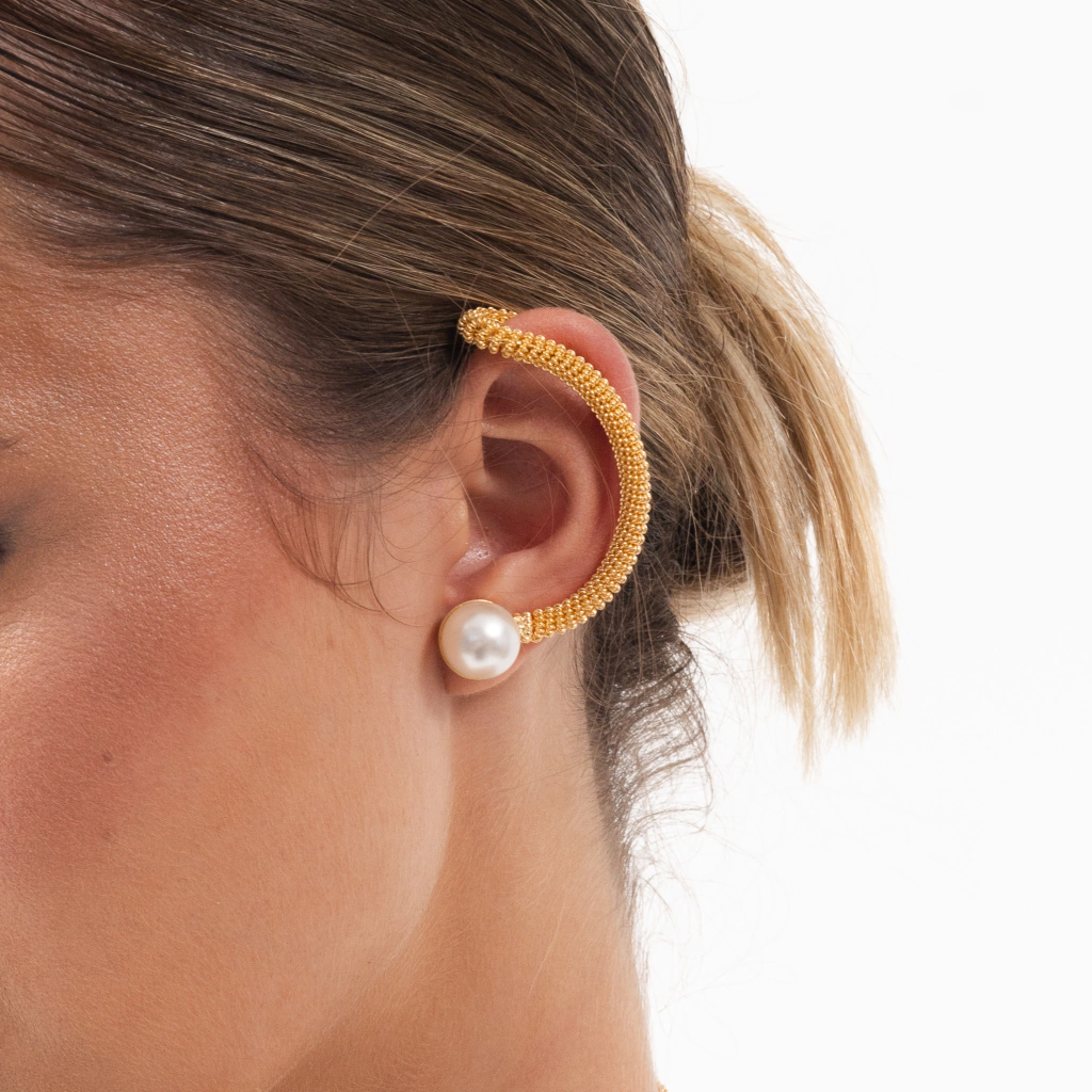 O Brinco Wire é uma peça maximalista e de super presença, aramada com pérola.