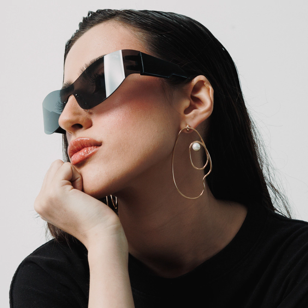 The Wonder Earring features an organic design in smooth wire with a pearl accent. (7 cm height / 4.5 cm width / 0.1 cm wire thickness)